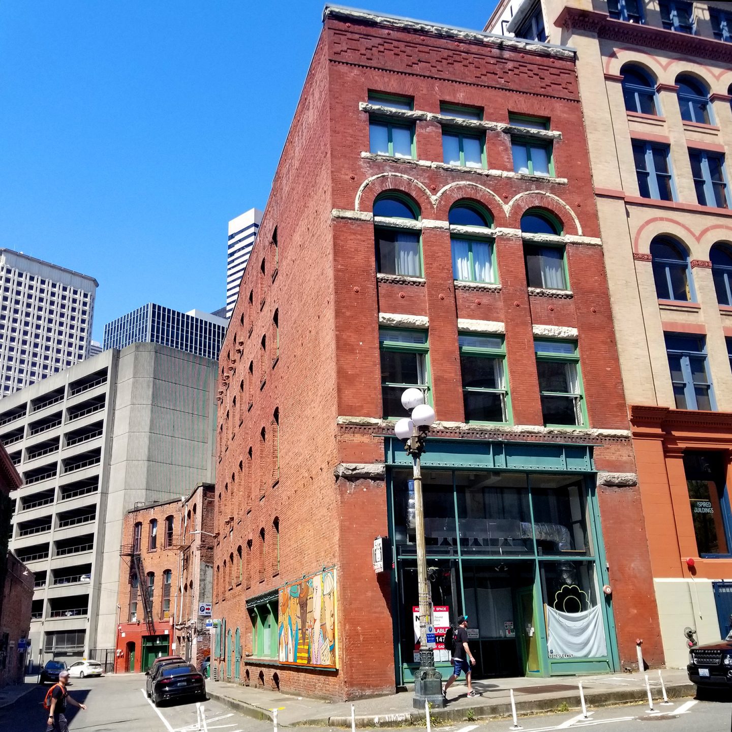 Cross 1st Avenue and walk east on Yesler to our next stop.