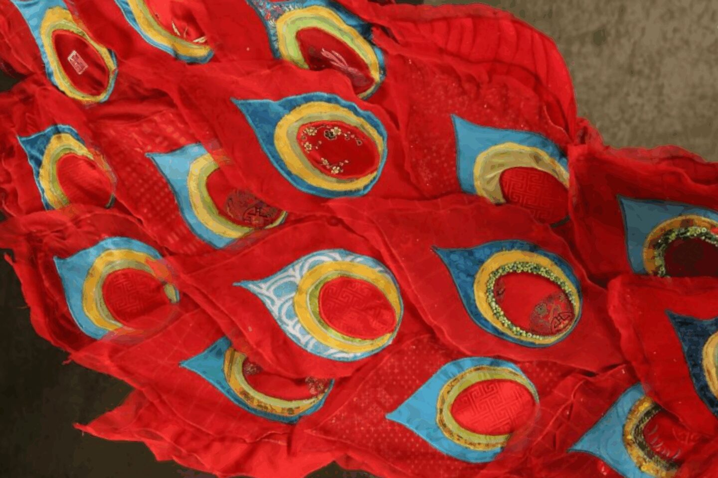 Greer placed her Phoenix Fairy on a red patterned branch made from fabric just above the Children’s Center reference desk. Reminiscent of a lush illustration, Greer created the phoenix’s feathers from individually sewn pieces of red fabric in different shades and patterns, glitter and sequins, and additional pieces of yellow and turquoise fabrics for the tail feathers. The phoenix is understood in different cultures as a bird, often born of the sun, that cyclically dies in flames and is reborn from its own ashes. Greer notes in her explanation of the work that ideas and imagery of the phoenix are found across mythology, astrology, astronomy, world religions, animal behavior, history, and children’s literature.