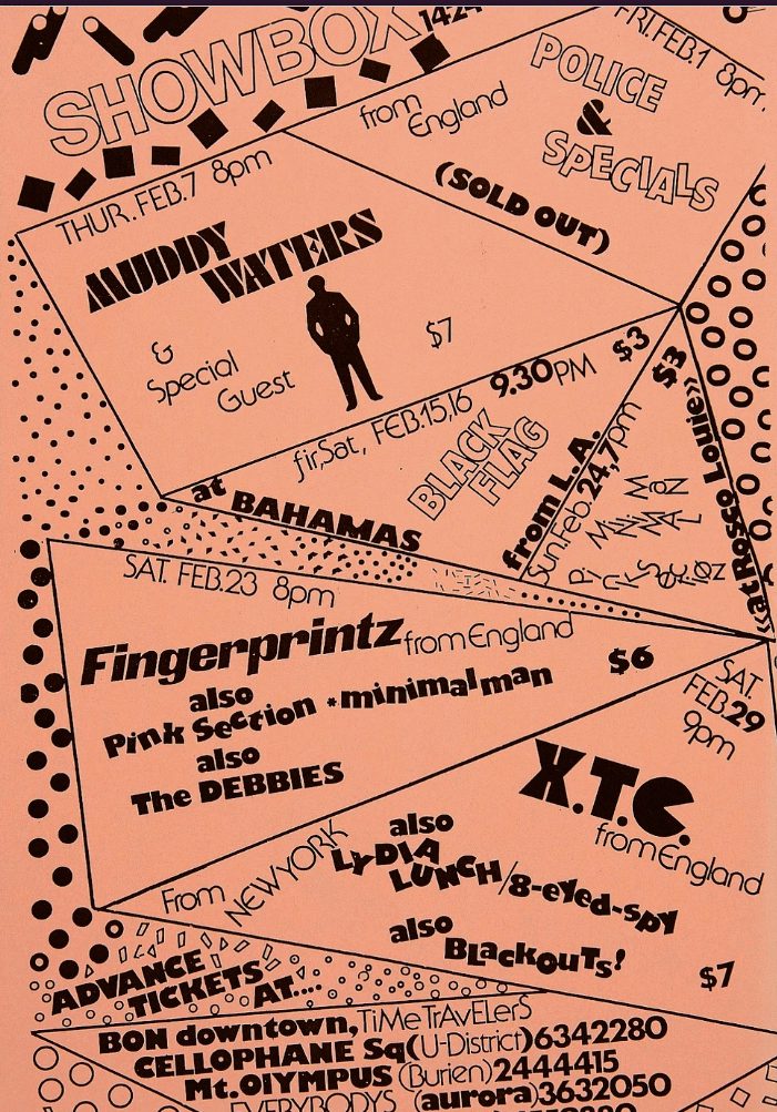Meanwhile the Underground kicked off with a policy of booking local punk-era bands including the Blackouts, Chinas Comidas, the Cowboys, Customer Service, the Debbies, the Enemy, the Features, the Frazz, the Girls, the Jitters, Larry and the Mondellos, and the Magnetics. In 1980 San Francisco’s Neutrinoz performed here, as did California’s iconic hardcore punks, Black Flag.