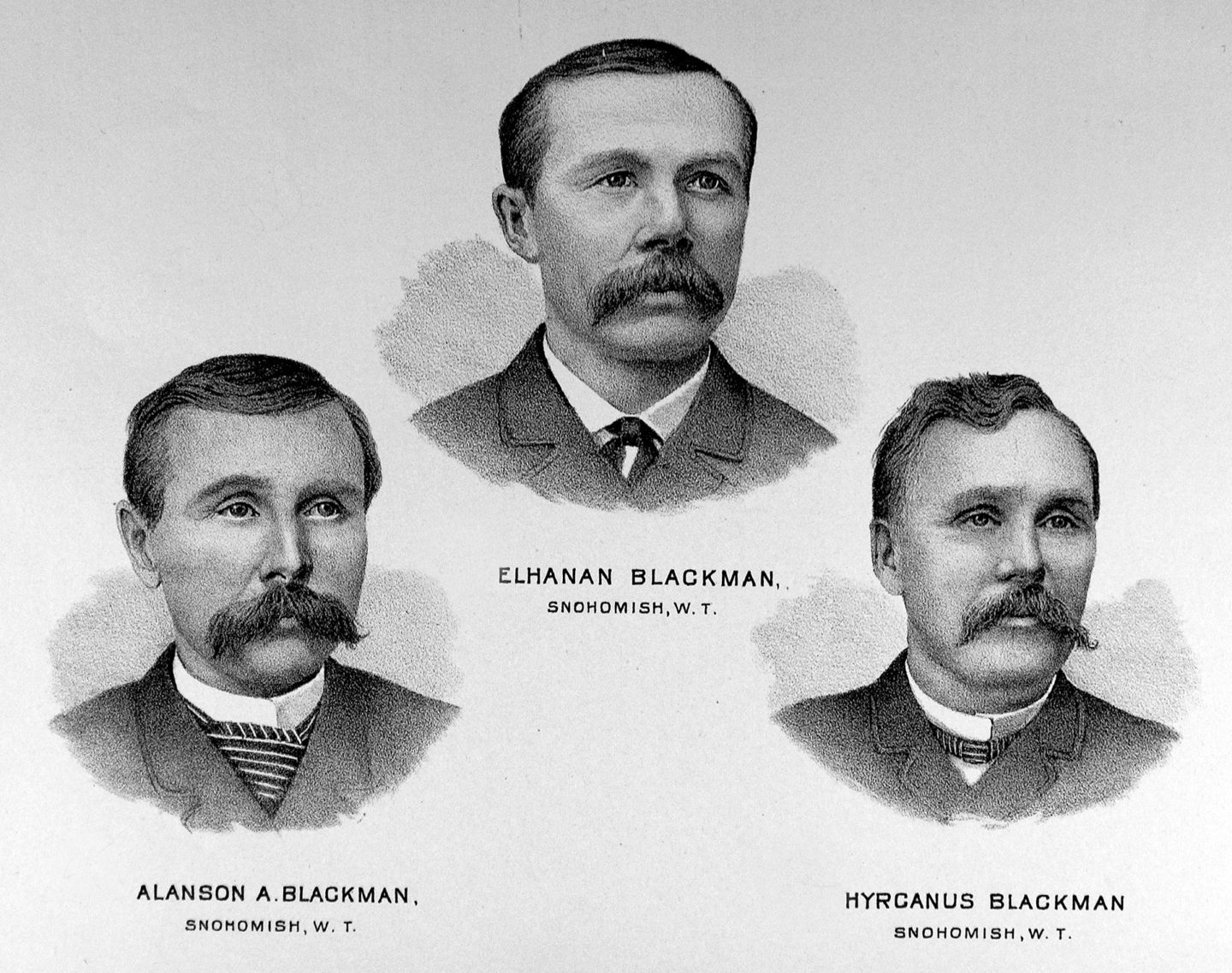 The Blackman Brothers were born into the lumber business in Bradley, Maine, named in honor of their grandfather. In 1872, all three brothers, with their wives, migrated to the Pacific Northwest. Alanson and Elhanan opened the first logging camp at Blackman Lake some two years later, while Hyrcanus minded the books. All three brothers built each other’s homes on Avenue B, but only this one has survived.