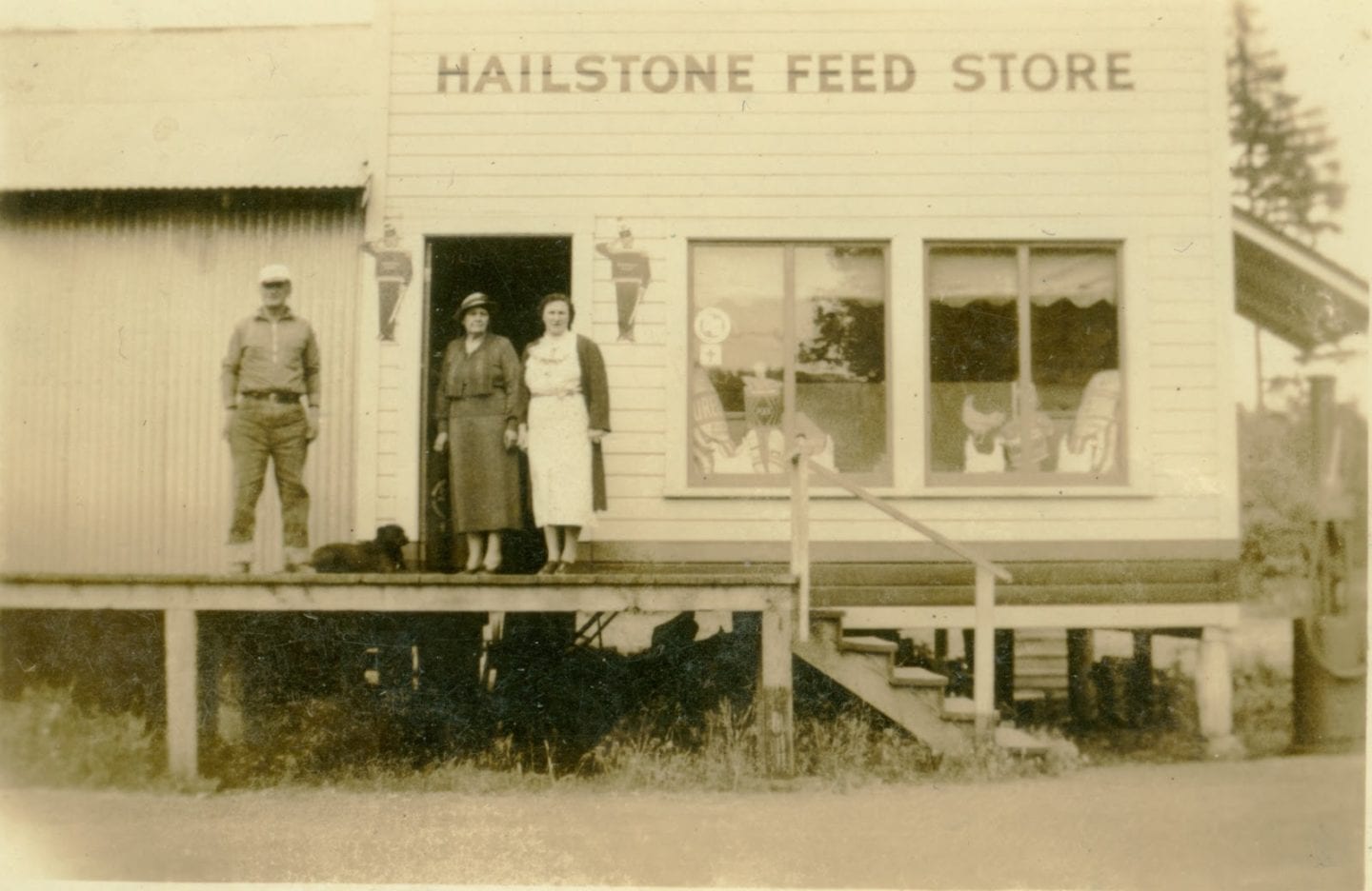 Frank Hailstone and his sister, Nell Hailstone Falkenstein, bought the building in 1941. After a remodel, it opened in 1942 as the Hailstone Feed Store and Shell Gasoline Station. Frank, his brother James, and Frank’s brother-in-law David Lewis ran the feed store, while Nell operated the gas station. The business remained in the family until 1966. Afterward, the store continued operating under several different owners until 1990.