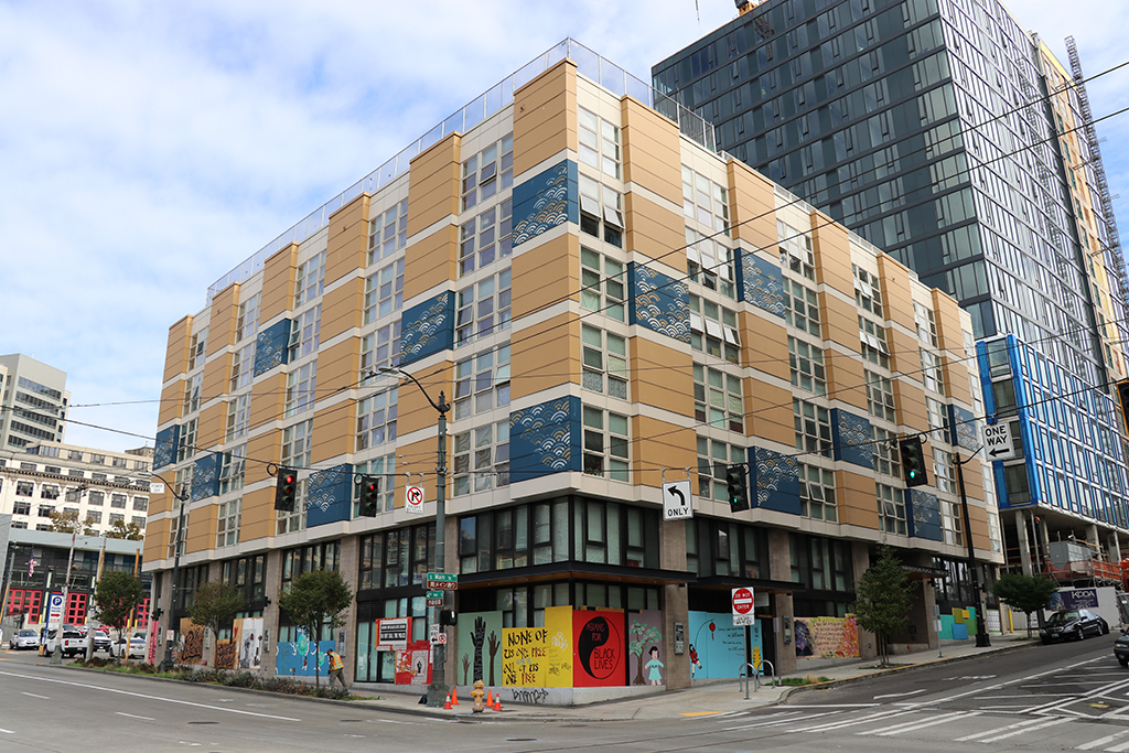Hirabayashi Place is built on land occupied by Seattle’s Japanese American community in the early days of its settlement. In 2016, after years of low-rise commercial buildings on this site, the property was developed into a 96-unit affordable housing project owned and operated by Interim Community Development Association. It is named for Gordon Hirabayashi, a social justice and civil rights leader who peacefully protested the illegal incarceration and curfew of Japanese Americans during World War II.