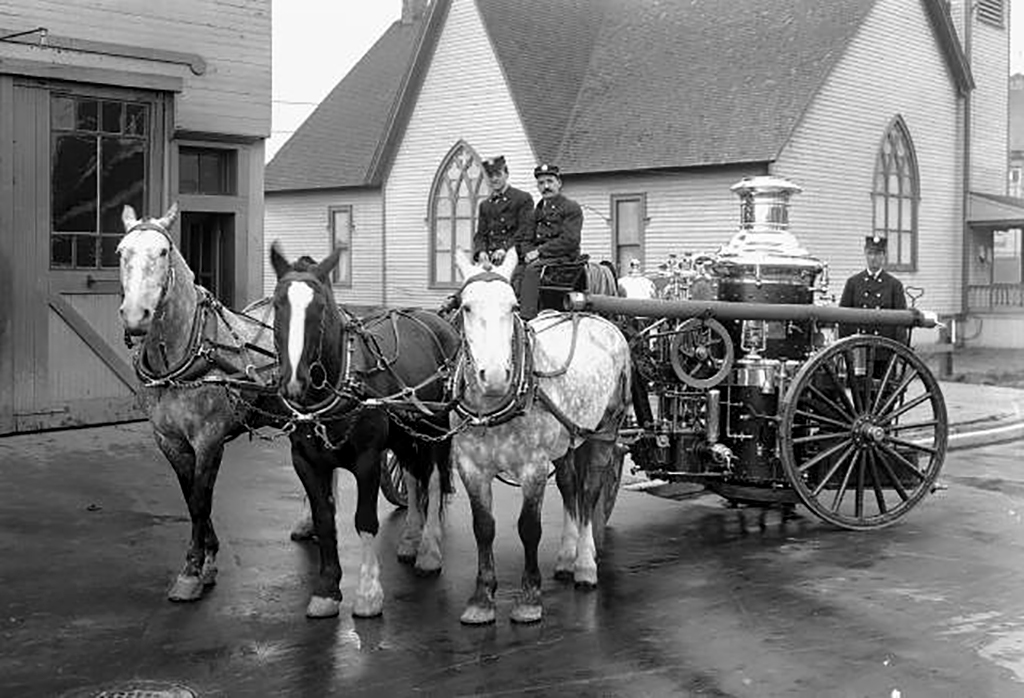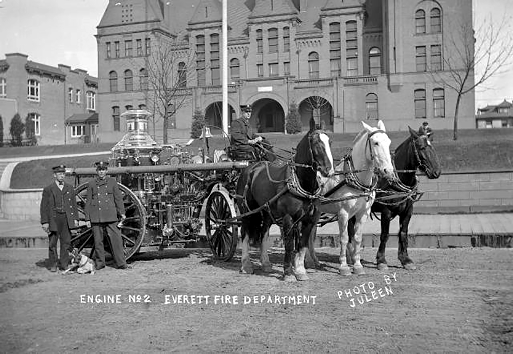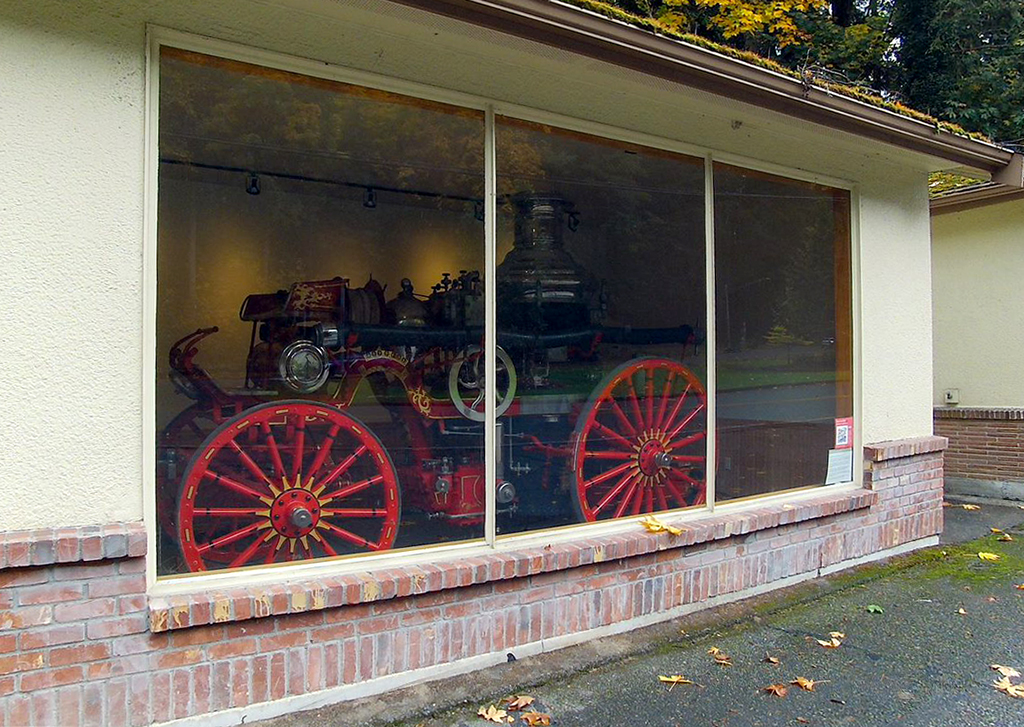 Today the station houses the Everett Fire Department’s restored horse-drawn 1906 Ahrens-Continental Steamer, acquired by the city in 1907. It served until 1912 when the city began using motorized equipment. The Ahrens was owned privately for a time and returned to the city in 1946 where it was exhibited in Floral Hall and later at the new Fire Station #4 on Glenwood Avenue. Everett firefighters bought the engine for a dollar in 1958 and restored it in 1965, at a cost of $2,000. The Ahrens has been a crowd favorite in local parades.