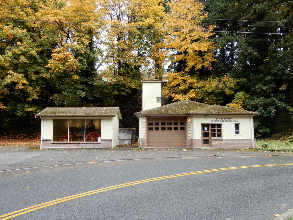 During World War II Everett’s population grew rapidly with the arrival of military personnel at Paine Field and wartime workers at Everett Shipbuilding and Drydock Co., quickly stretching city services. Fire Station #4, built in 1948, was active until 1991 and reportedly was the last Everett Fire Department station constructed without an exhaust system to vent hazardous fumes. It was outdated long before its closure, having a small vehicle bay that could not accommodate large fire rigs. Retired firefighters remember drawing pictures on the walls in the exhaust residue.
