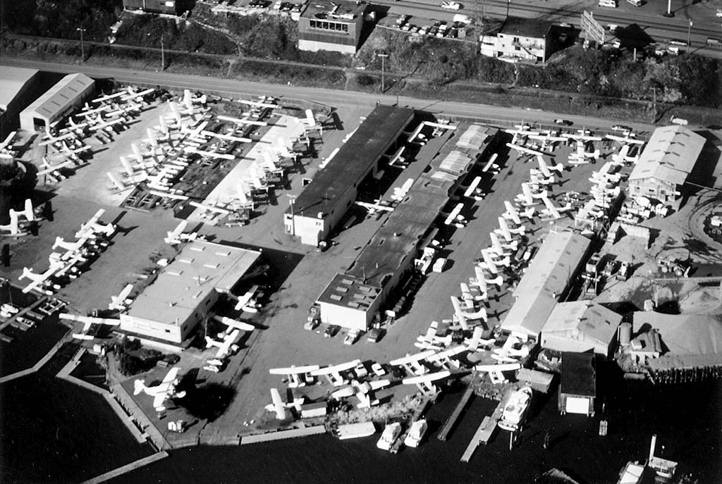 Kenmore Air Harbor was founded in 1946 by three men, aviation mechanics Bob Munro and Reg Collins, and pilot Jack Mines, after returning from duty in World War II. They purchased a shingle mill and adjacent swamp totaling 2.5 acres at the north end of Lake Washington. Bob Munro and his family lived in the house on the property that also served as the business office. Their first plane was a 36 horsepower Aeronca airplane, built using parts from wrecked planes.