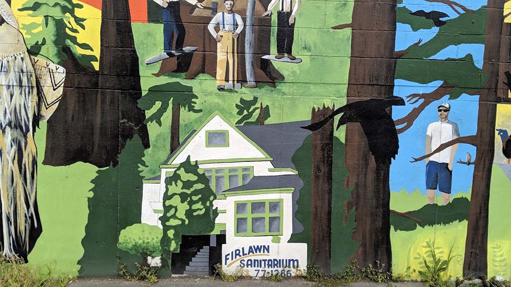 — The men at the top were cutting down a tree, using spring boards to stand up higher on the trunk. In the 1930s, Firlawn Sanitarium, located on Lockwood Villa Road (later NE 175th Street), offered private medical treatment specializing in psychiatry. Famous author Thomas Wolfe was a patient in 1938.