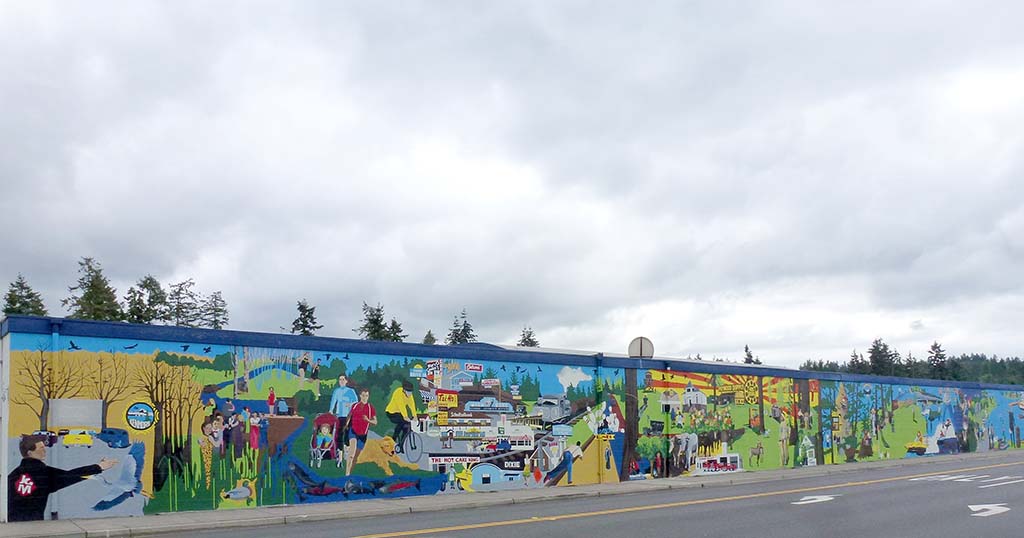 The Kenmore Mural Project began with a simple exchange of emails between the City of Kenmore and St. Vincent de Paul staff in May of 2015. Completed in the summer of 2016, the mural is 188 feet long by 12 feet tall and is considered to be the longest mural in King County, and one of the longest murals in the state of Washington. The mural tells the cultural and historical narrative of the City of Kenmore, deepening the sense of place for community members and visitors.