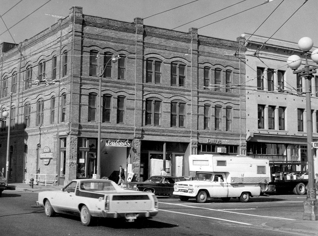 Walk west on S Jackson Street two block to the southwest corner of First Avenue and the Schwabacher Building.