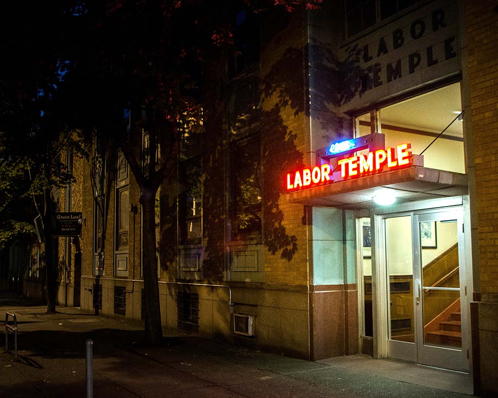An earlier Labor Temple at 6th Avenue and University Street had been a safe meeting place and offices for many different unions, and it was there that the General Strike was hatched. In 1942, the various unions moved to this site, and into a bigger, two-story brick building at a location better suited to members in the maritime trades. In time the building was widened and increased to three stories. The brick exterior and marble-clad hallways adorn a structure featuring a meeting hall and a private basement bar known as “The Pit.” Several labor unions still maintain offices in this temple, which is listed on Seattle’s historic landmarks registry.