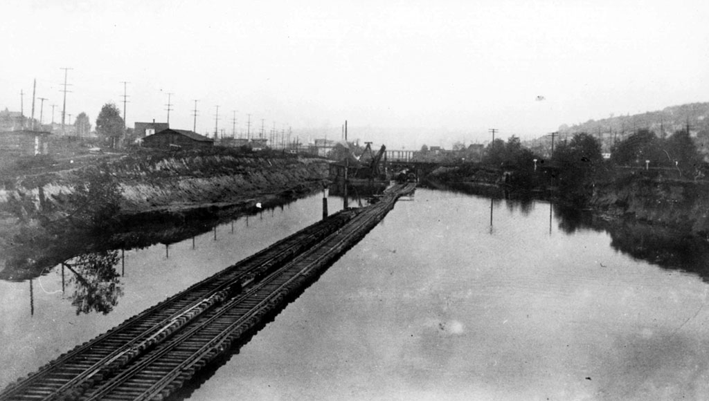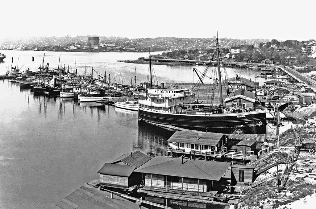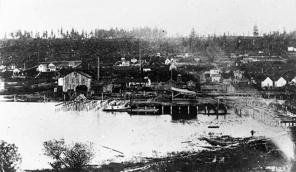 And, instead of standing on land, you would have been on the lake’s shoreline, which extended to about Mercer Street. The western shoreline reached almost to 8th Avenue North (then called Vine or Park Street), almost 600 feet from the modern shoreline. At that time, the lake had long been known in Lushootseed as Ha-AH-Chu, or littlest lake, and later as tenas chuck, or little waters, in Chinook Trade Jargon. The modern name originated on July 4, 1854, when Thomas Mercer coined that name in the hopes “of this little body of water sometime providing a connecting link uniting the larger lake and Puget Sound.” Mercer had homesteaded on the shores of the lake, along with David Denny.