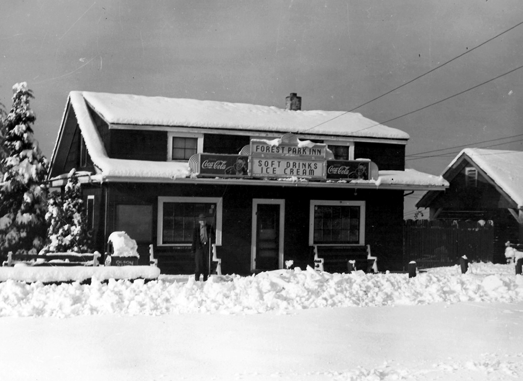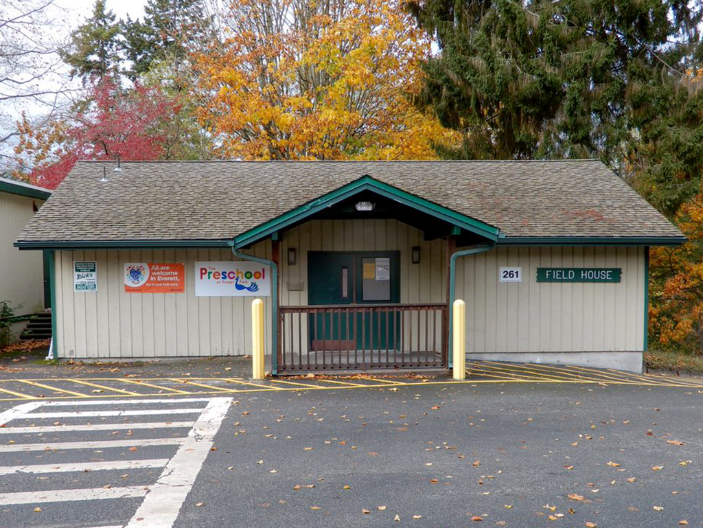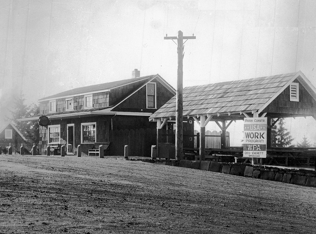Spruce Hall is a modular building purchased from the Everett School District in the 1980s. The Field House stands near the old site of the Forest Park Inn. The area to the north of the Field House, as well as roads connecting down to the park’s west entrance, have changed significantly through the years, with a once large ravine filled in.
