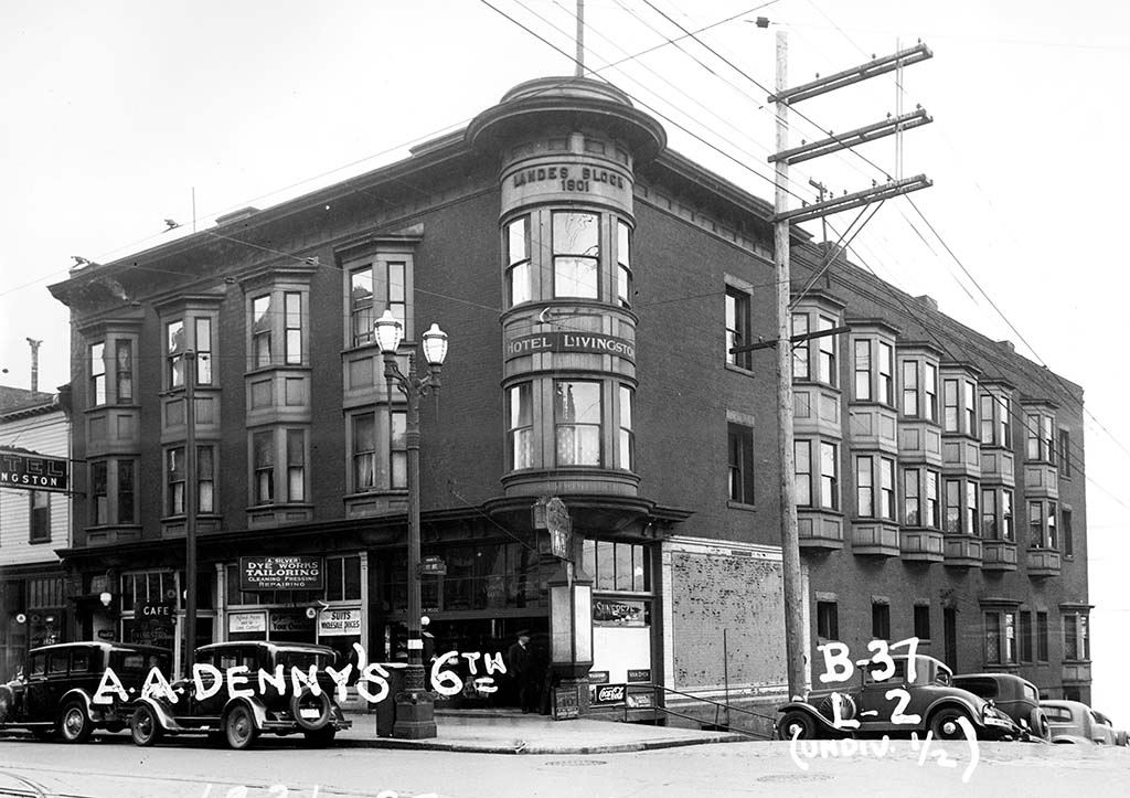 The identifying “Landes Block” printing on the northwest side of the building refers to Colonel Henry Landes of Port Townsend, who may have been an owner in the building, although the details are unknown. By 1937, the contemporary layout of the Virginia Inn, its iconic sign, and the adjacent Livingston CafĂ© (now Le Pichet) had stabilized. In 1978, the lower floors of the Livingston became home to the Pike Market Community Clinic and the Pike Place Market Senior Center. The Senior Center has since moved to the LaSalle Building.