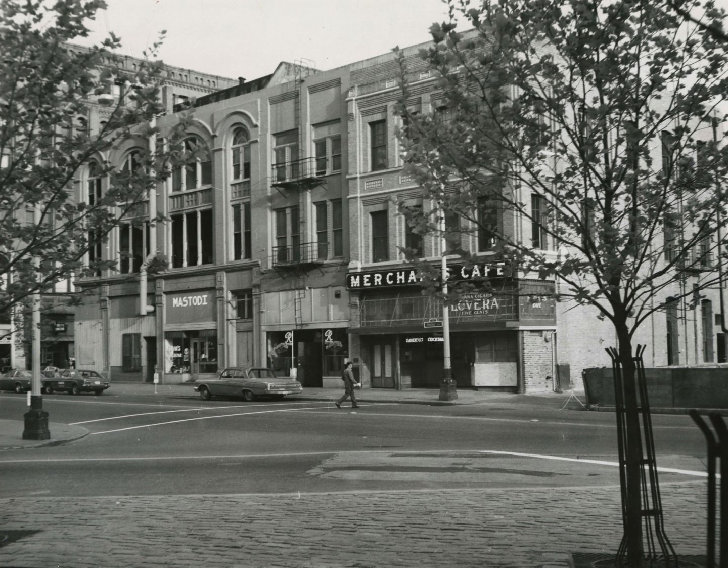 By 1973 the café was featuring live music, including, over the years, jazz (by Dianne Schuur, Bill Smith’s Trio, Collier and Dean, and the Pete Leinonen Quartet); blues (by the Hokum Blues Band, Brian Butler, Kathy Hart, Patty Allen, Bill Engelhart, T.Q. Junior and the Icemen, and the Fenderskirt Blues Revue); and rock (by Abraxas, Arrow, and Owl). In 1977 the city’s top rock band Heart threw a record-release party at the Merchant’s for its Little Queen album. Around that time, the café changed hands yet again. In more recent times the old cardroom in back went away, and the upstairs units were spiffed up as a boutique hotel.