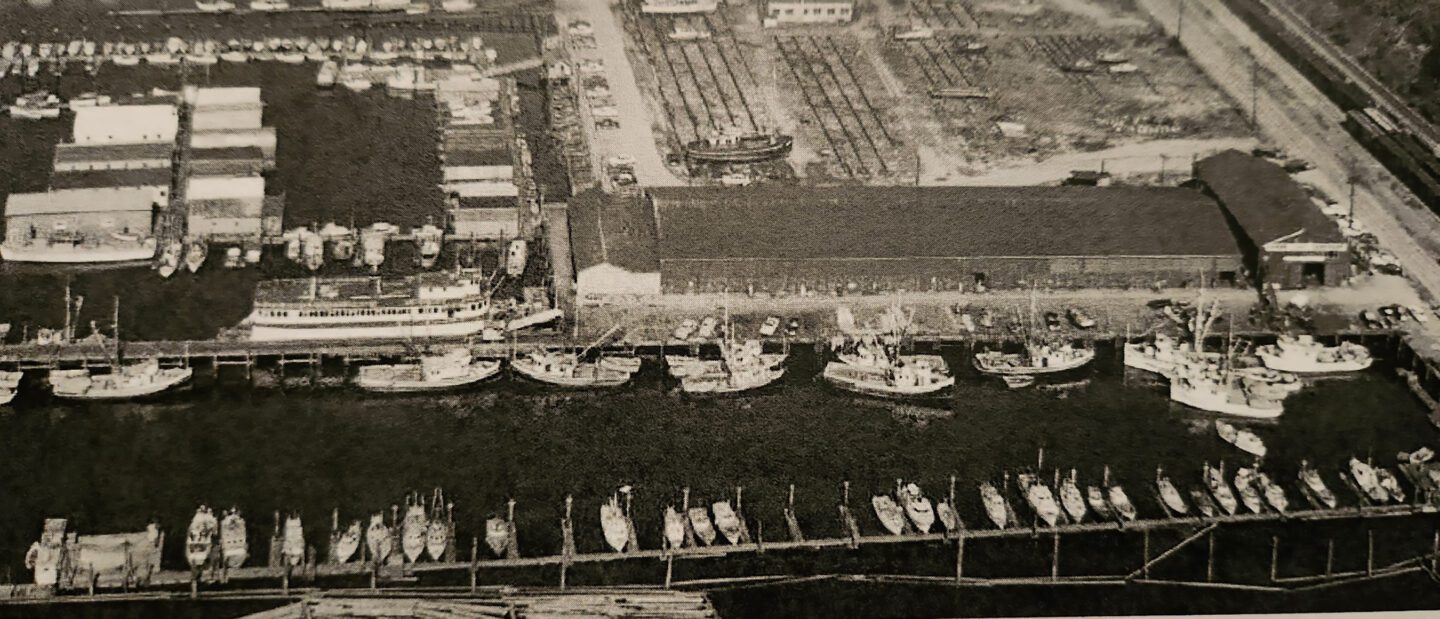Look north. You are standing at the location of the large historic Net Sheds building, a key component of Everett’s fishing fleet. A number of commercial fishing boats were based on the Everett waterfront. The fishing industry was an important part of the waterfront history and culture. The waterfront was a busy place with many industries, home to sawmill workers, shingle weavers, and commercial fisherman.