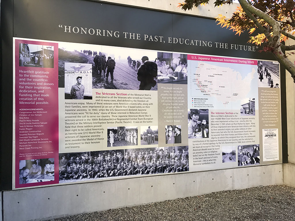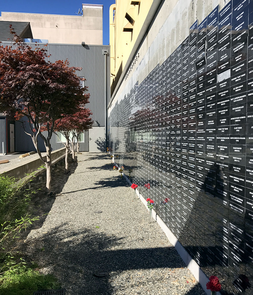 In 1951, the building became the property of the Nisei Veterans Committee and has undergone several renovations. Most striking of the renovations was the construction of a 90-foot, 3,750-granite-tiled wall on the northern border of the property. Each tile contains the names of those incarcerated with representation from all 10 relocation and eight prison camps, veterans who were in military service, and those who were killed in action. The NVC offers docent tours of the facilities and museum artifacts.