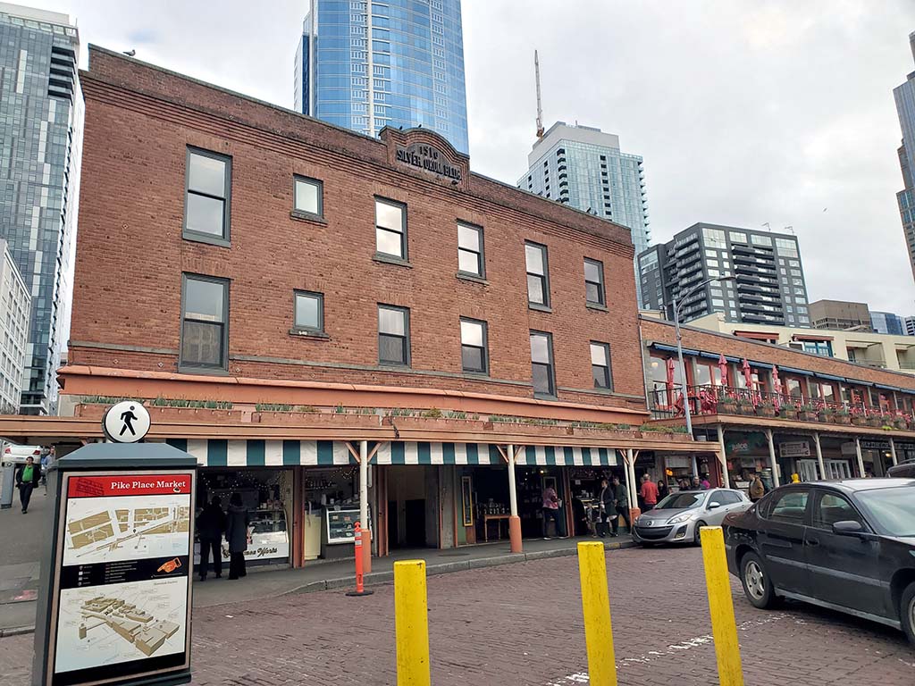 Pike Place exterior, foot of Pine Street, in front of City Fish