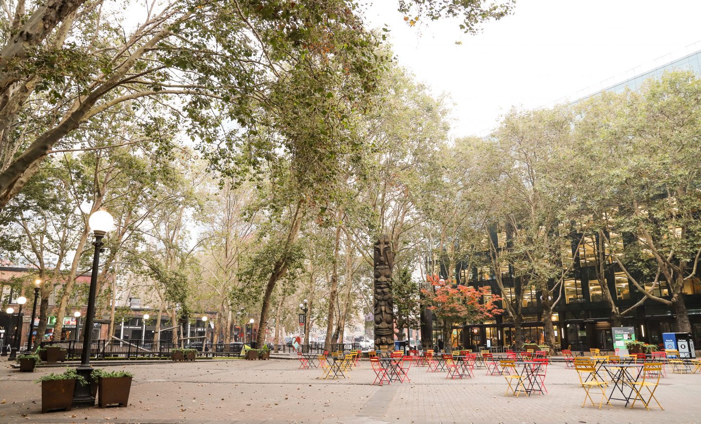Since then, Pride parades, in numerous forms and recognizing various LGBTQ+ communities, have occurred in Seattle as well as neighboring cities and towns. And while the picnic and parade have moved on from Pioneer Square, Occidental Park still waves its own version of a Pride flag: One day in late July 2022, audio speakers housed in the park’s glass-and-timber pavilion blared the music of Whitney Houston, an LGBTQ+ icon, who, before she became famous, had a romantic same-sex relationship with her best friend. As Houston sang, “I Wanna Dance with Somebody (Who Loves Me),” a shirtless man gyrated in the sunshine, much like, decades earlier, dancers had shaken their groove things in Shelly’s Leg.