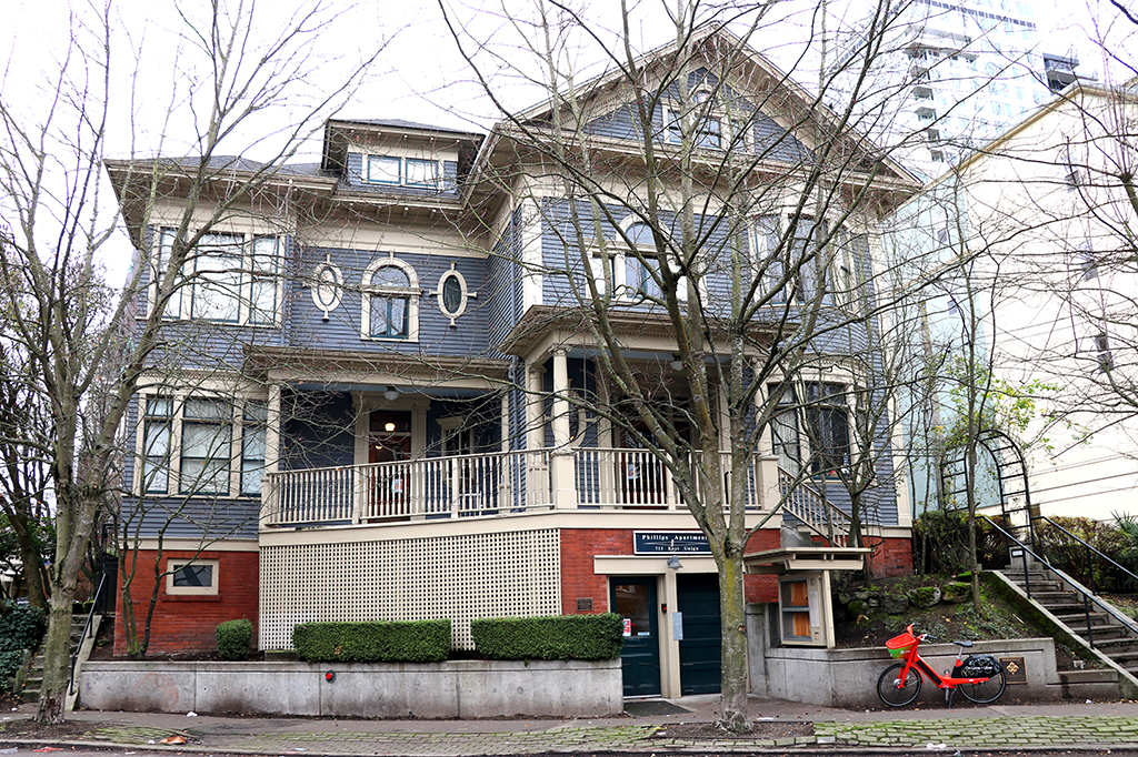 Just east of Boylston Avenue on the south side of E Union Street is the Phillips House. Accountant William Phillips developed this framed “double dwelling” in 1902. Designed by Edwin A. Williams & Rufus B. Clark, the building clearly expresses its two-part nature with slightly different profiles and ornamental treatments—a hybrid of Colonial Revival and Classic Box styles. Its attractive classical pediment, cornices, Palladian and oval windows, and rounded bay window present a rich facade to the street. While attached housing was common downtown and in city neighborhoods early in the twentieth century, nearly all examples have been demolished or altered. Boarded up for many years, this property was purchased by Historic Seattle and renovated into 11 units of low -income housing in 1993. The property is listed in the National Register of Historic Places and represents another successful merger of historic preservation and affordable housing.