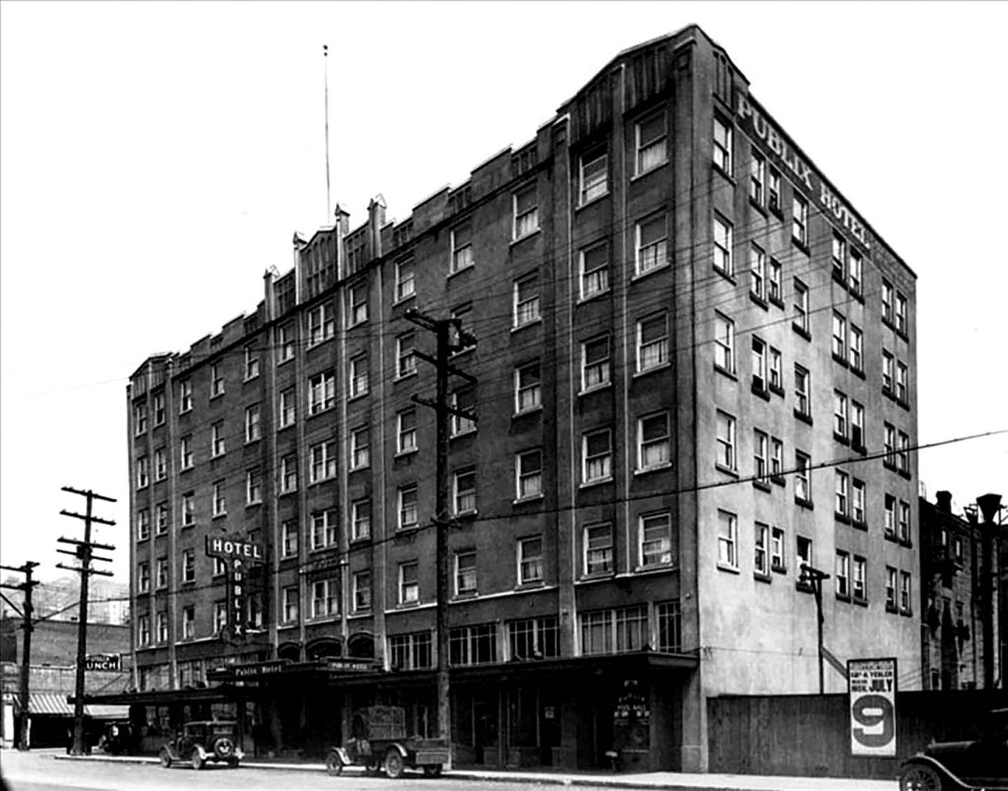 Most SROs in the neighborhood were built between 1880 and 1920. Usually, the first floors were commercial businesses like drugstores, grocers, and sundry shops, with offices such as doctors and herbalists on the mezzanine level, with residential floors above. The Publix once had 12 storefronts and 211 rooms. From 1945 to 2003, it was managed by a Japanese American Taniguchi family. The Publix was reopened in 2016, a mix of market-rate one-bedroom and studio apartments.