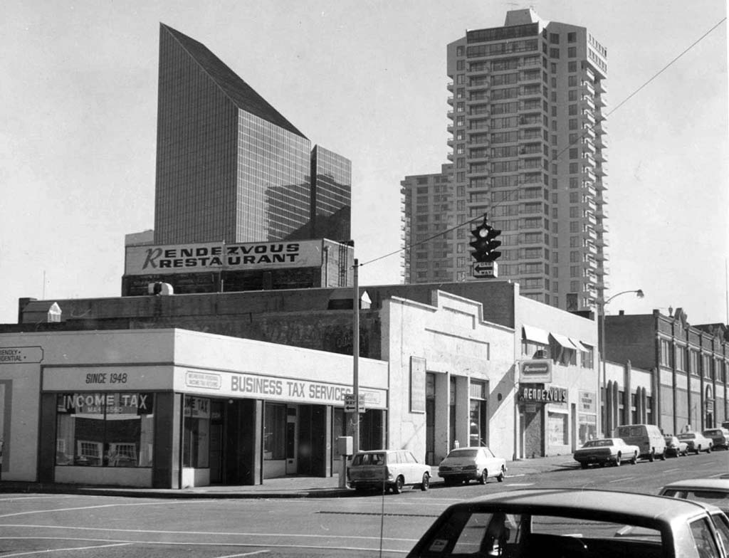 Another attraction was next door at the Rendezvous CafĂ©, where movie business bigwigs could meet, eat, drink, and strike deals. Locals lingered trying to spot movie stars, and newspaper reporters trafficked in gossipy stories. Owner George Blair sold the Rendezvous after World War II, famed architect B. Marcus Priteca handled a remodel, and a Vienna-trained chef was brought in to upgrade the menu. By 1987, and under new ownership, rock bands gained access to basement rehearsal spaces, and the renamed Jewelbox began hosting shows. Both the Rendezvous and the Jewelbox became hangouts for the flannel and Doc Martens crowd. New ownership took over both businesses in 2002, remodeled once again, and then many years of fun commenced. The Rendezvous remains a popular nightspot, while the Jewelbox, home to Seattle’s burlesque revival, is treasured for its live concerts, films, comedy, karaoke, and magic shows.