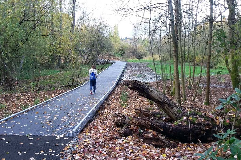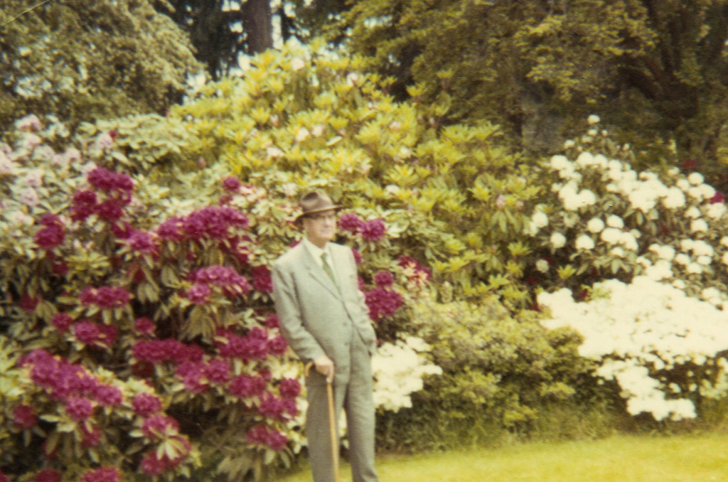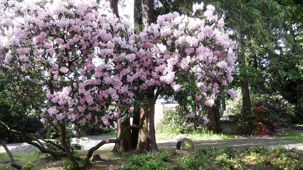 Rhododendron Park sits on 13 acres of land in Kenmore and was once the home of rhododendron enthusiast Reginald A. “Charlie” Pearce. An Englishman who immigrated to the Pacific Northwest at the turn of the 20th century, Pearce became a Seattle clothier and Alaska equipment outfitter. He and his wife settled in Kenmore in 1920 and began cultivating rhododendrons as a hobby. The project soon turned into a commercial enterprise they called State Flower Nursery. The Wall Street Journal featured the couple in a 1932 article with pictures of some of their rhododendron and azalea plants, and rapidly brought them national notice. Pearce created at least three new hybrids, the Pinky Pearce (azalea), Pearce’s Golden Jubilee, and Pearce’s American Beauty (rhododendrons), specimens of which are in the park.