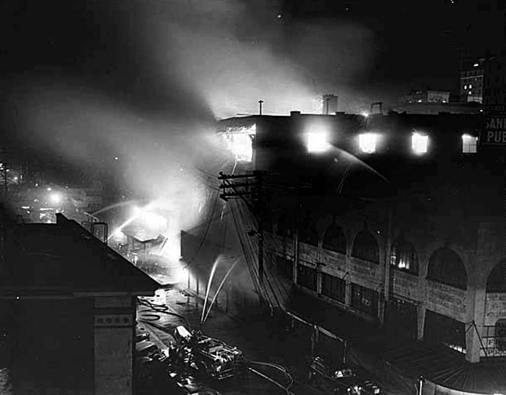 Although the cause of the Sanitary Market’s fire was never determined, it occurred just over a week after the bombing of Pearl Harbor, a time of deep distrust, and rumors spread that Japanese farmers in the Market had something to do with it. Not long after the fire Franklin Roosevelt signed Executive Order 9066, the internment order. The impact of this forced incarceration on the character of the Market cannot be overstated: It nearly destroyed the Market outright. In 1939, 515 farmer licenses were issued, and by 1943 only 196 were issued. Roughly two-thirds of the farmers had been forced out of this farmers market.