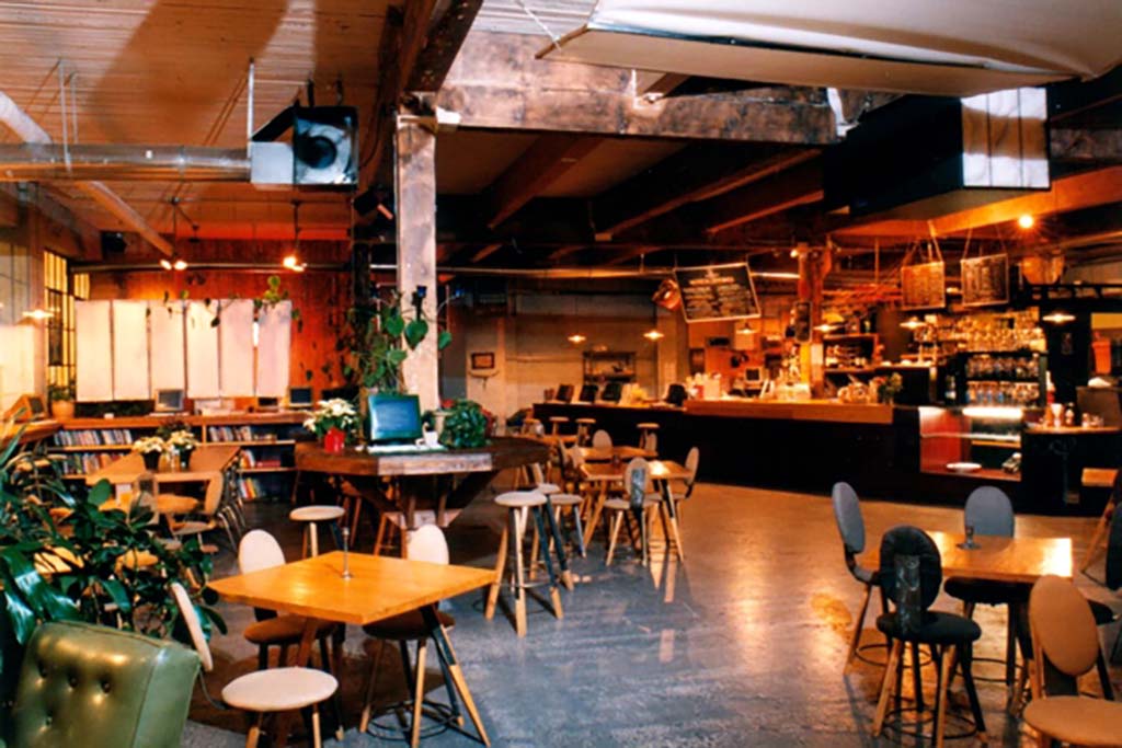 In 1994, at the dawn of the Internet era, the Speakeasy CafĂ© was founded on this site by Mike and Gretchen Apgar, and Mike’s brother Tyler Apgar. The Speakeasy was a combination cybercafĂ©, bar, art gallery, performance space, and tech hub, where people without computers or internet access could use in-house computers to get online. In 1999 the company began offering DSL services nationwide, while the Speakeasy’s popular performance space hosted events ranging from plays to comedy to music.