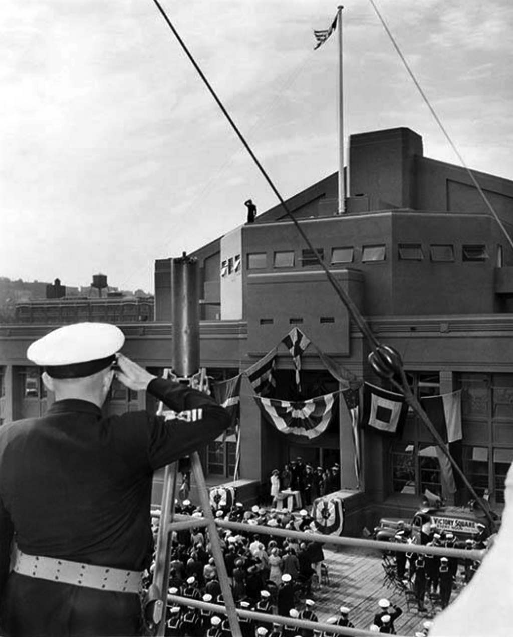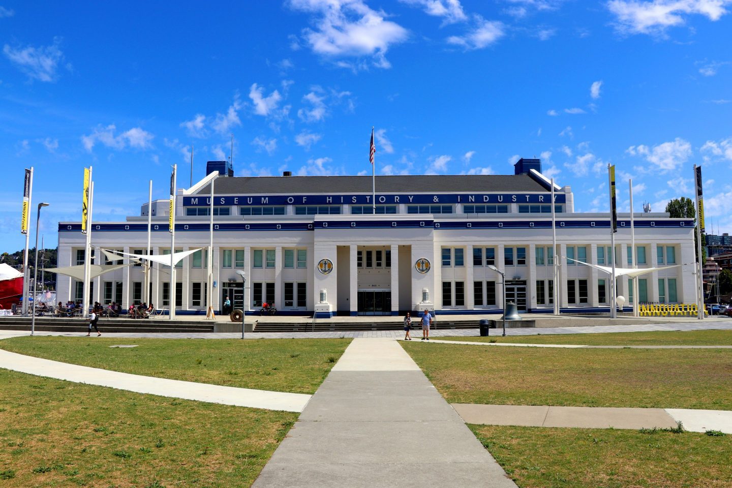 Now the home of the Museum of History and Industry, which tells Seattle’s story through exhibits and interactives, the Art Deco-style building sits on the site of the Brace and Hergert mill. Architects B. Marcus Priteca and William R. Grant designed the structure as an armory for the United State Navy. It opened in June 1942 and housed a training school featuring a “wet-trainer” room (a watertight room that could be filled with water so sailors could practice evacuating a flooded ship’s compartment), a full-scale ship’s bridge, a chart room, a radio room, a combat information center, a rifle range, and a two-story gymnasium. After the war it became the local headquarters for the United States Naval Reserve.