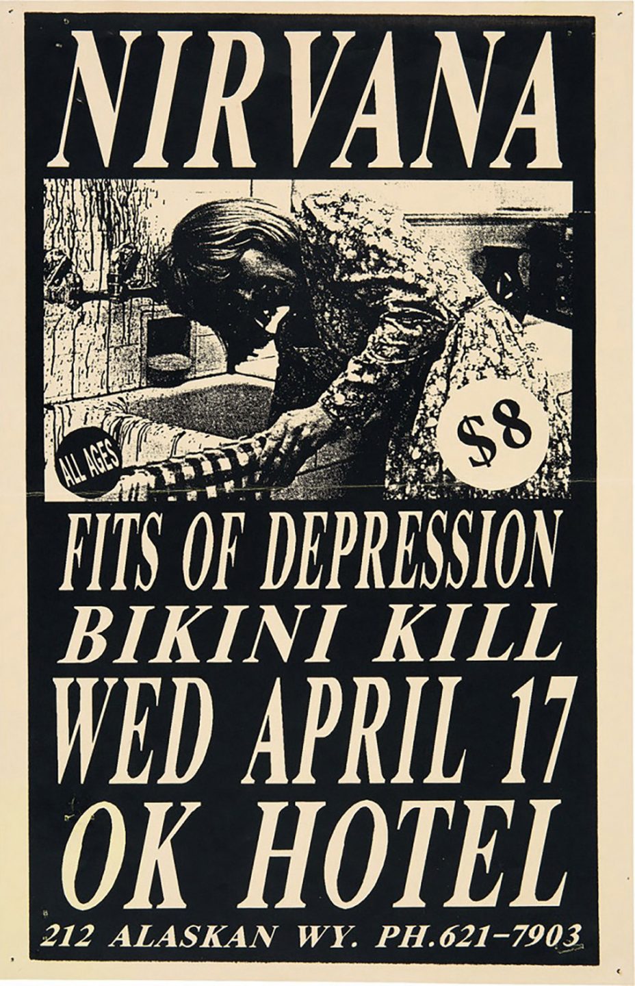 In 1953 Seattle’s new bypass route for the old Highway 99 — the immense overhead concrete bridge called the Alaska Way Viaduct – was erected, creating even more soot, noise, and grim darkness for the O.K.’s residents. Did we mention that trains also clanged along in a below-grade tunnel? Well, decades of obscurity flew by until 1988 when new lessees, Tia and Steve Freeborn, figured the spot was ideal for loud rock shows. Kicking off with an unofficial show by Mother Love Bone (pre-Pearl Jam), thousands of subsequent shows would feature bands such as Soundgarden, Mudhoney, Pearl Jam, Bikini Kill, the Gits, Sublime, the Queens of the Stone Age — and most famously, Nirvana, which debuted its future hit, “Smells Like Teen Spirit” here on April 17, 1991.