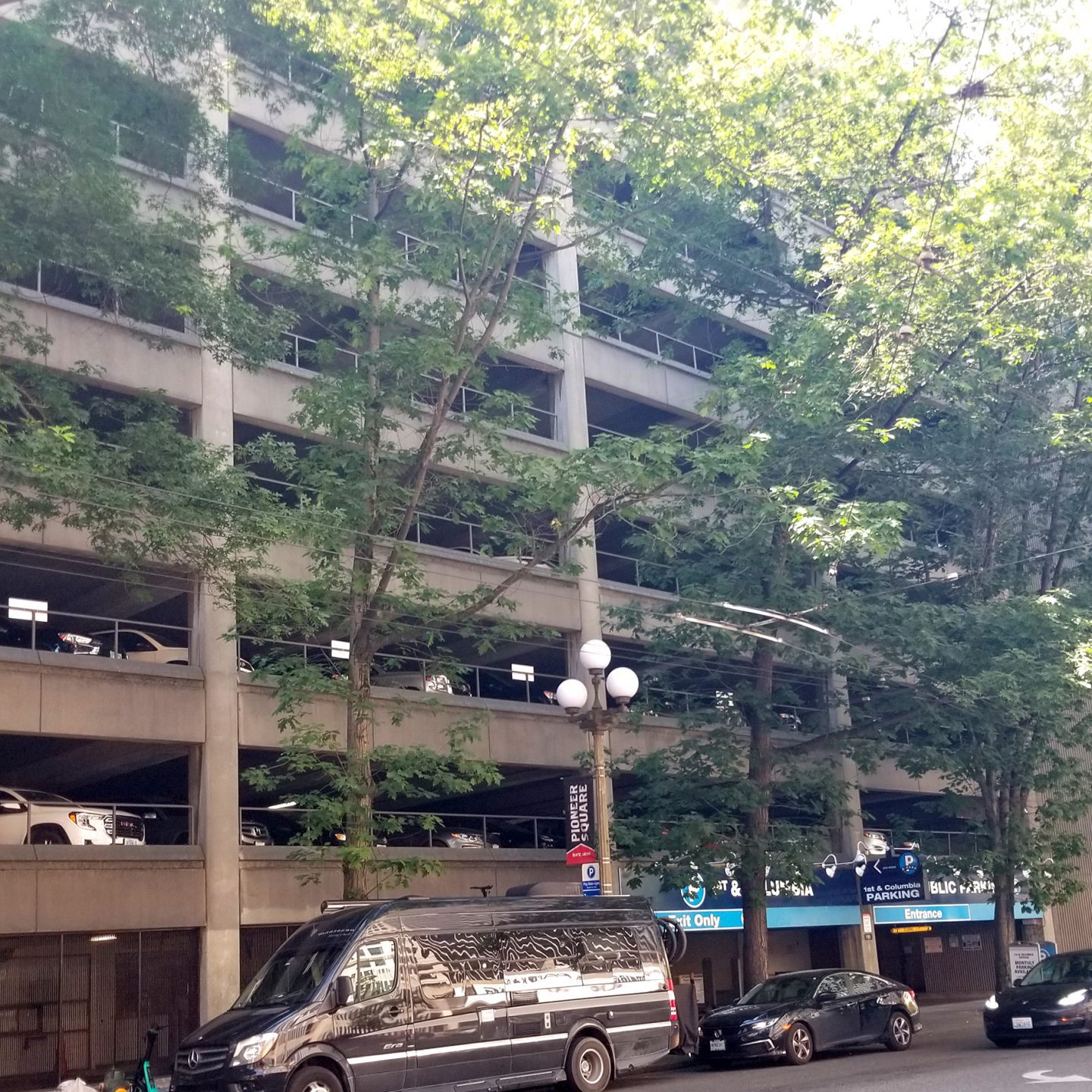 Now home to the 1st & Columbia Parking Building, this site originally held 1884’s Merchant’s National Bank Building, which burned in the Great Seattle Fire of 1889. Thereafter, the seven-story Safe Deposit Building was built, and in 1956 was sold and renamed the Reliance Building. In January 1962, mere months before crowds descended to visit the Century 21 World’s Fair, Charlie Puzzo launched The Penthouse jazz club here. It had a profound effect on the city by offering shows by many of the greatest jazz stars, including John Coltrane, Miles Davis, Dizzy Gillespie, Stan Getz, Art Blakey, Elvin Jones, and Anita O’Day.
