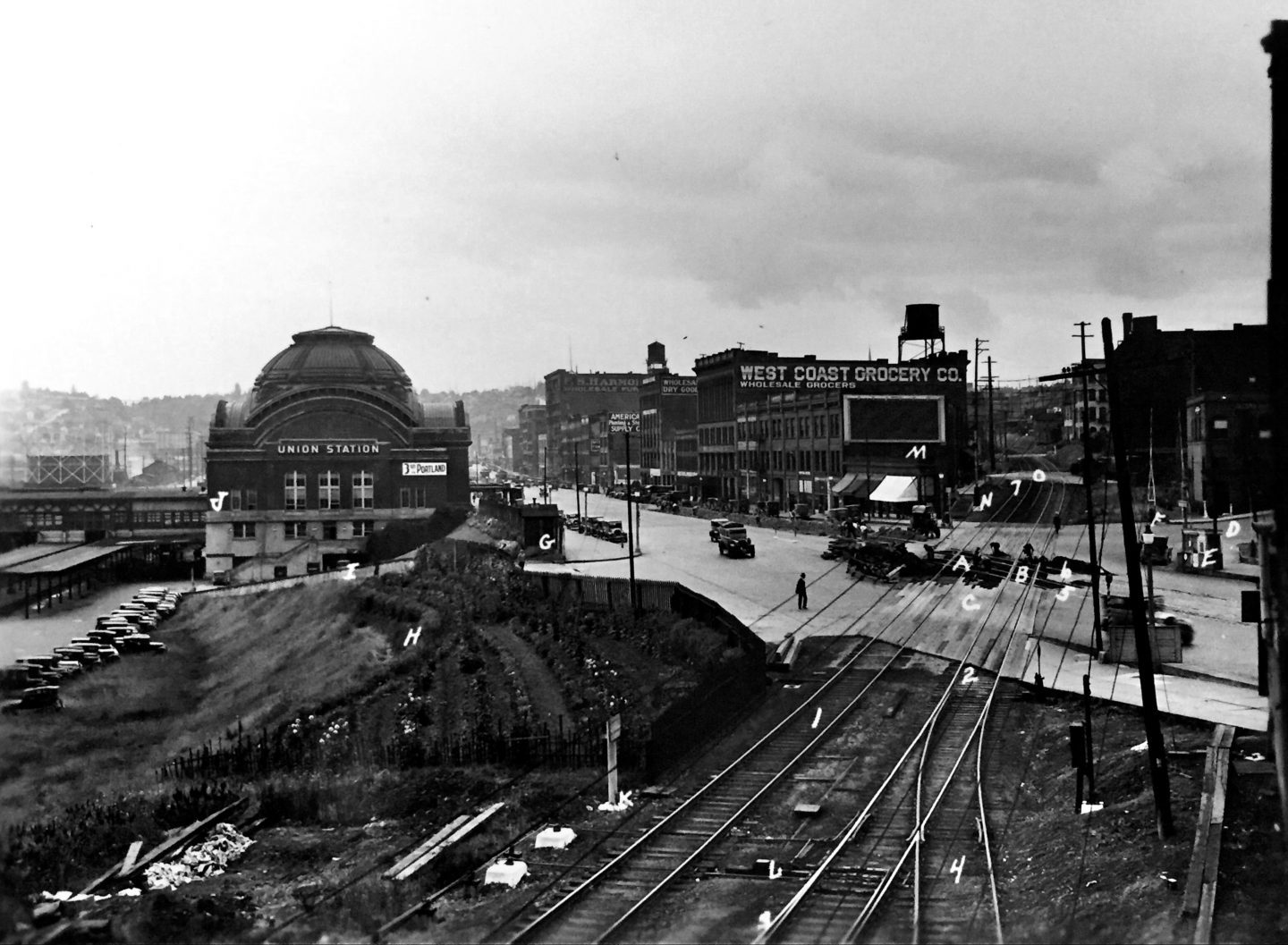 Union Station is younger than most of the warehouse buildings in the district and is the third passenger depot built in the area. When the original drawings were done for the building in 1909, it was intended for the sole use of the Northern Pacific Railroad, but by the time construction was scheduled to begin, the Great Northern and the Union Pacific lines were coming into the city. The three railroads became partners in the building and its name was changed to Union Station.