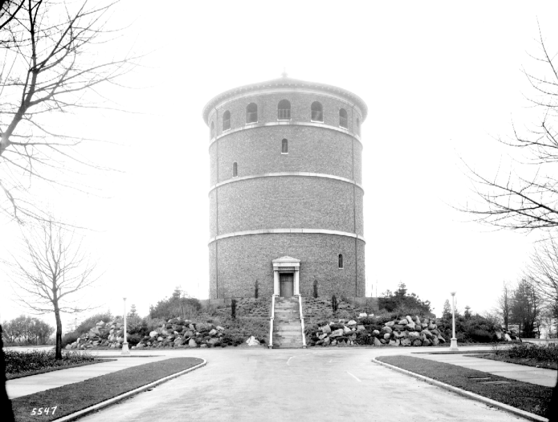 The building surrounding the standpipe was built in 1906. In a letter to his wife Sophie, John Charles Olmsted supposed that the building had been designed by Charles Saunders, a local architect who also served on the Board of Park Commissioners, but it is not clear that he created the design.