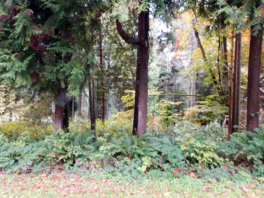 Plantings on the hillside south of Mukilteo Boulevard and below the ballfield have retained much of the park’s 1930s design. Trees planted by WPA workers included cedar and pine, with the addition of deciduous specimen trees, laurel and English Ivy.