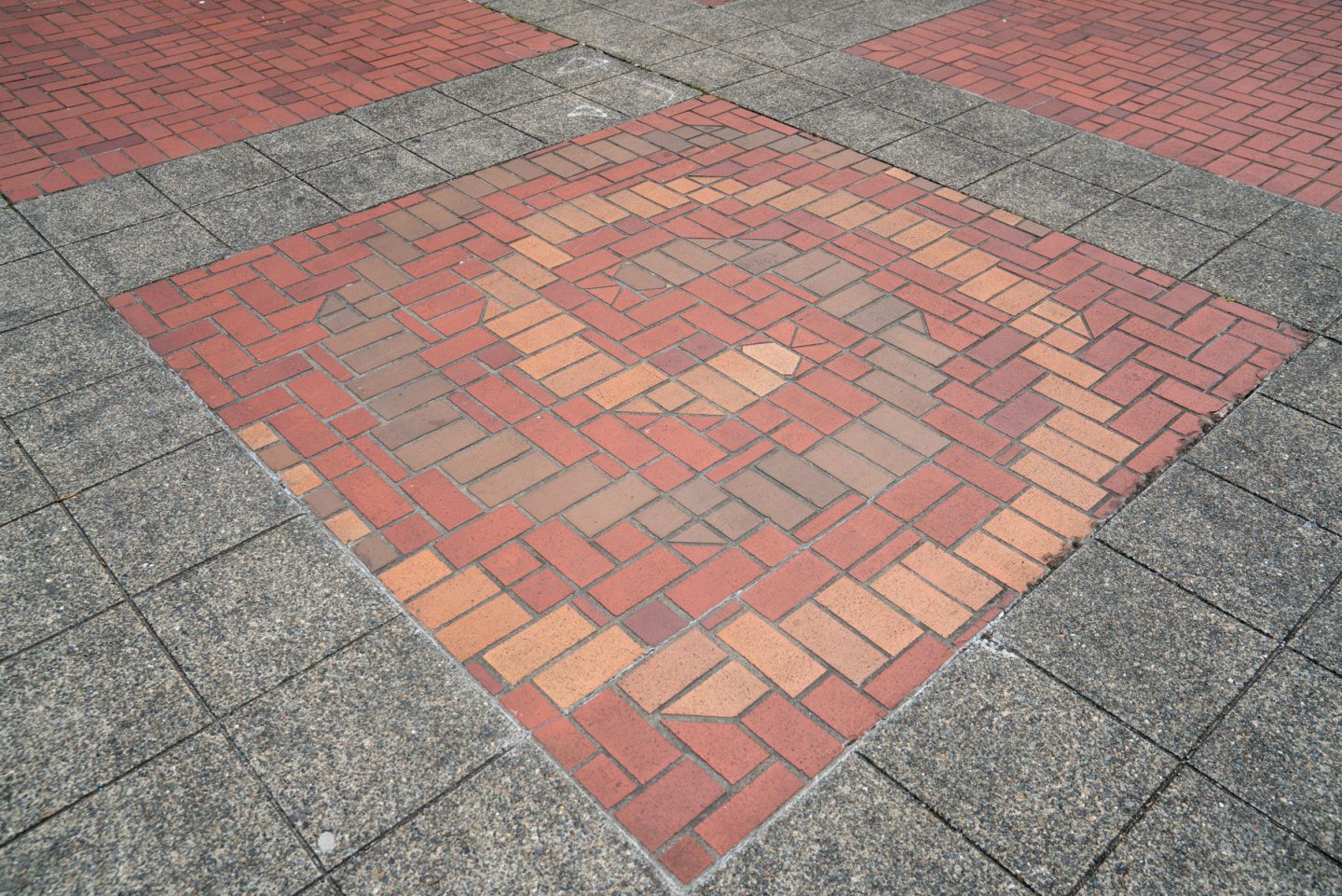 Walk south, past the stage again, into the open plaza square near 5th Avenue S and S Weller Street. Embedded in the brick paving underfoot you’ll see 12 symbols of the Chinese calendar rendered in cut and colored bricks. Each symbol is about 8-foot square. Though the symbols are based on the Chinese zodiac, they are also artists Ishii and Adams’ tribute to animal iconography of the Northwest coast Native cultures.