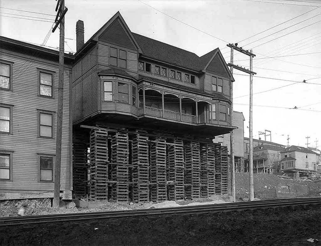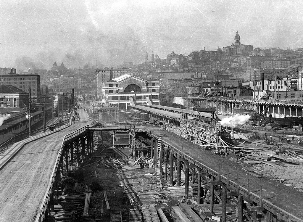 Early Chinese and Japanese settlement was originally located in the northeast corner of the Pioneer Square neighborhood, moving to its current location beginning in 1910. The relocation became a necessity because of urban redevelopment and public works projects that included the construction of the Union and King Street stations, and the Jackson Street Regrade project. Seattle’s CID was built in an area the city had designated in 1892 as a location for illegal and unseemly land uses that included dance halls, gambling and bottle clubs, and sex-worker establishments. For its new Asian American residents, it was a place of home and commercial businesses, many of which were storefronts in residential hotel buildings with spare living quarters in back or upstairs.